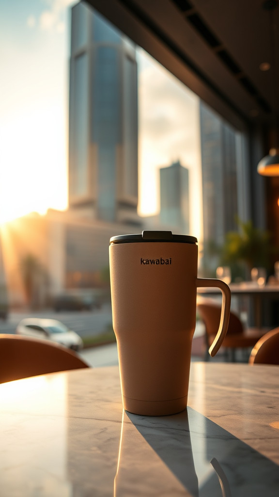 Stylish and functional coffee cup to keep your beverage at perfect temperature. Ready to be enjoyed on the go or at your desk.